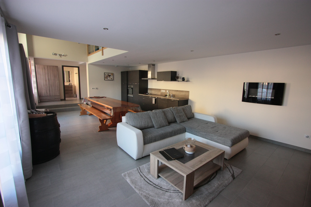 - Grand espace de vie avec cuisine, salle à manger et salon